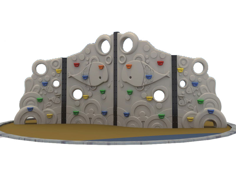 Rock climbing gym for kids shapes may include wooden platforms with ladders and railings around the outer edges. A variety of shapes are seen in school playgrounds, parks, and backyards, including geodesics, rocket-shaped structures, and other configurations. One common type of rock climbing gym for kids is a row of overhead bars, high enough for a child to hang from, but not so high as to cause serious injury in a fall. A child can swing hand-over-hand from one end to the other, or hang upside down from the bars by the back of the knees. To reduce the risk of injury from falls, jungle gym areas often have a thick layer of woodchips or other impact-absorbing material covering the ground.